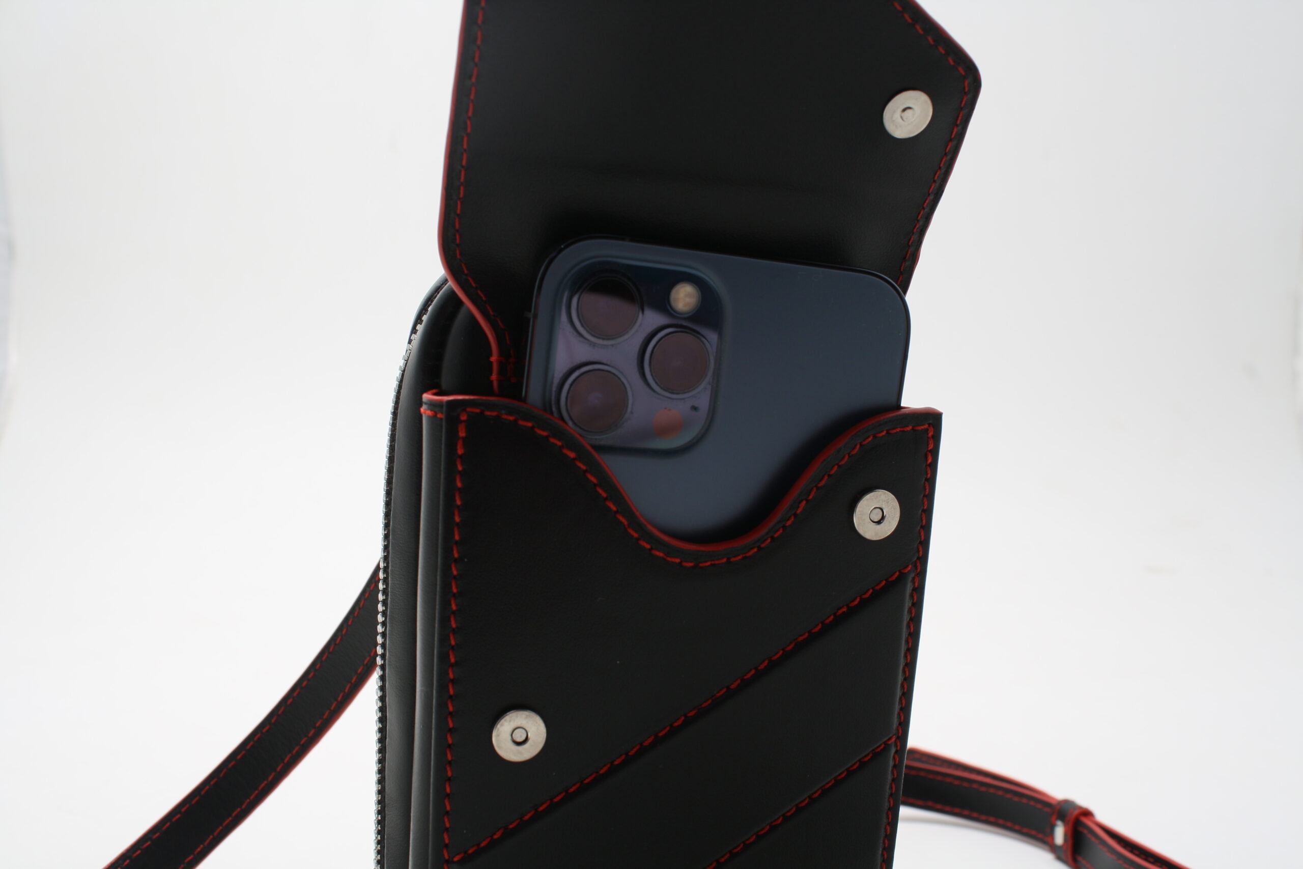 Kis táska telefon tartóval és cipzáros hátsó rekesszel, kártya tartókkal.